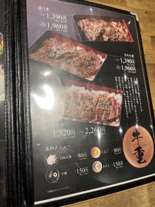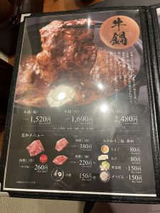 左から大きく分けて『牛鍋』『すき焼き』『牛重』がありました。