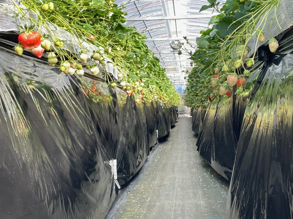 ハウス内はとても広く、5種類ほどのいろいろな種類のいちごがありました。