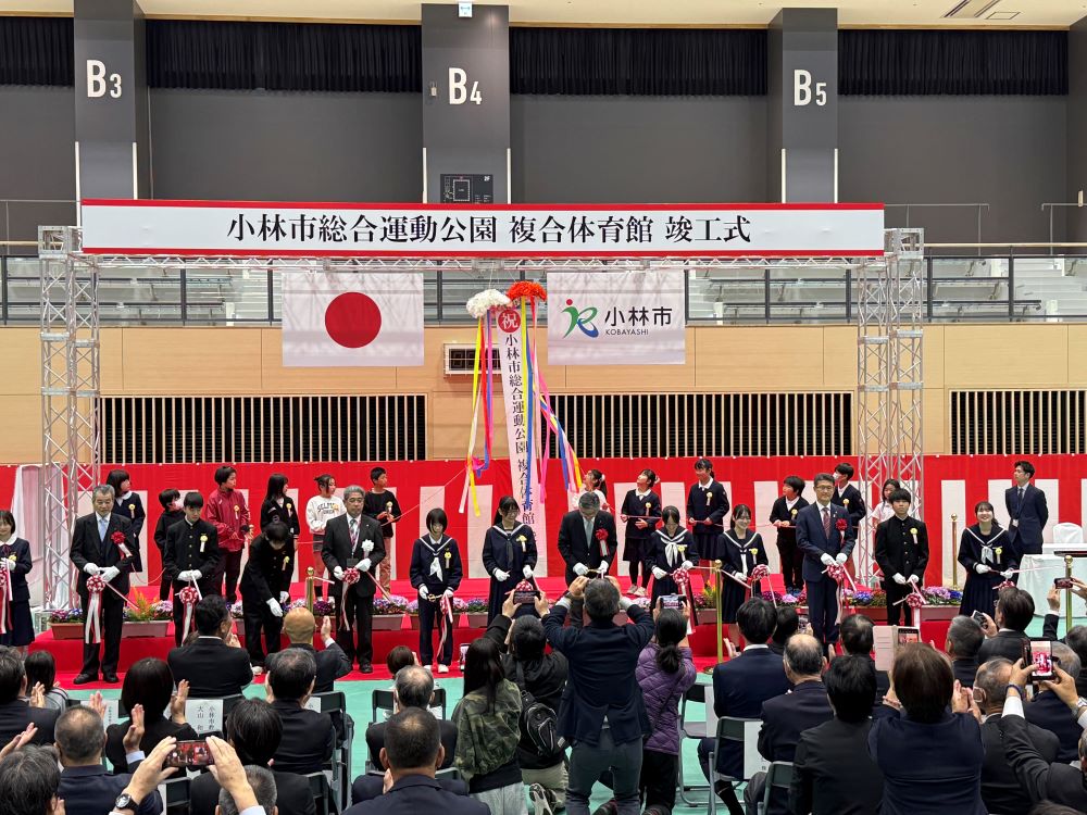 先日、3/28(土)に、小林総合運動公園内に完成した【複合体育館】の竣工式が行われました。